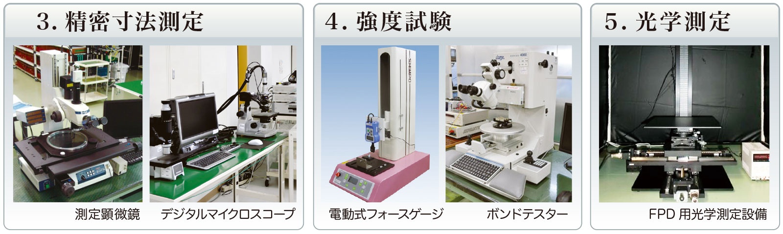 各種品質評価・試験 基板1枚、パネル1枚から対応いたします! 短納期で対応します。 実装強度測定・位置精度測定・信頼性評価・ 拡大撮影・X線撮影いたします。 実装試作・評価から量産までをお受けします。 リワーク・リペアも承ります!