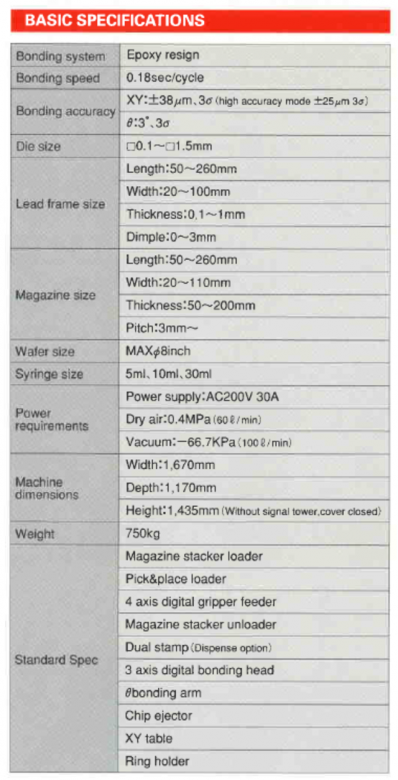 - On-board bonding accuracy : ± 0.025 mm (3σ) in both XY directions, ± 3 ° in θ direction