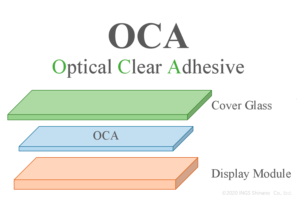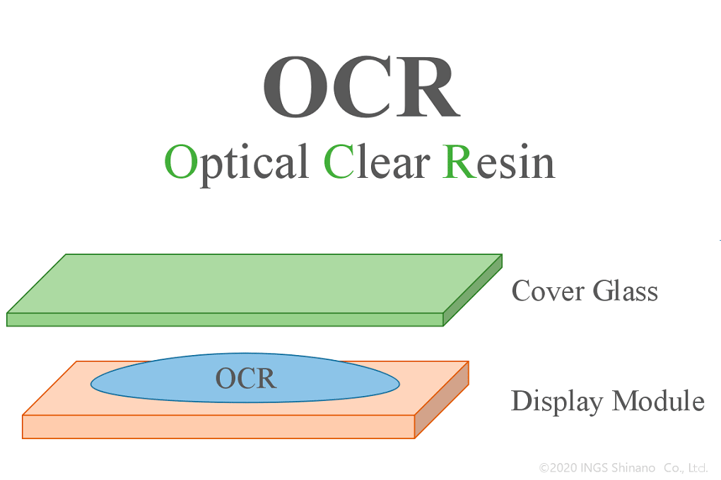 Laminating of optical materials between rigid bodies such as displays and cover glass is called direct laminating (optimal laminating).