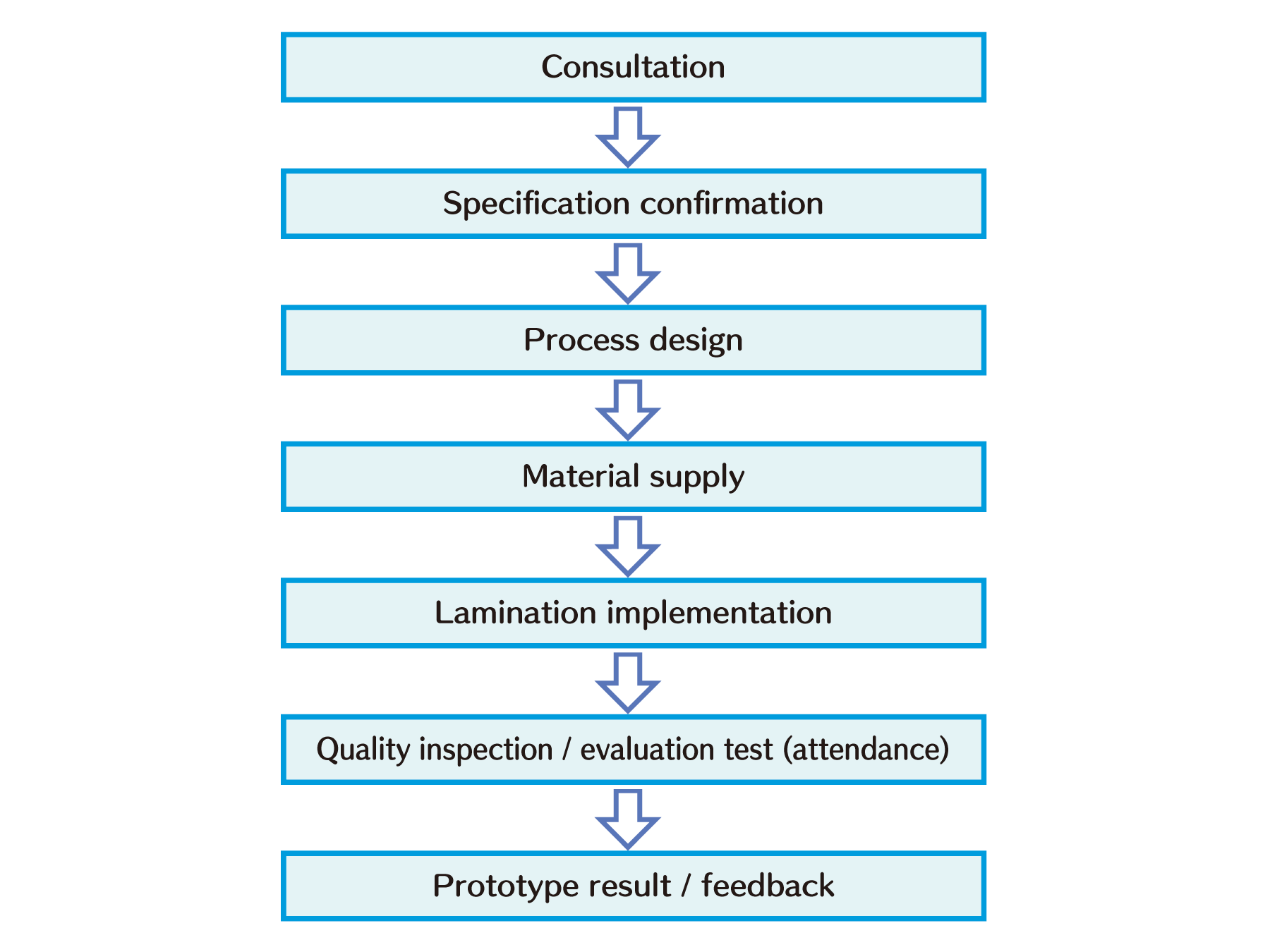 We solve technical problems such as laminating accuracy, prototype analysis, and optimal process construction know-how.