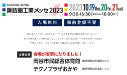 2023年09月18日(月) 諏訪圏工業メッセ 2023 イングスシナノは、10月に開催される諏訪圏工業メッセ 2023へ出展いたします。 会場:岡谷市民総合体育館・テクノプラザおかや ※ 今年から会場が変更になります! 日時:10/19(木)~21(土) 9:30-16:30 (最終日のみ16:00終了) 弊社ブース:岡谷市民総合体育館 西体育館<1F> ブースNo.063 (ものづくり支援センターしもすわ共同ブース) https://suwamesse.jp 岡谷市民総合体育館 西体育館<1F> ブースNo.063