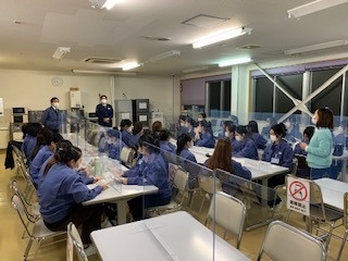 11月15日、当社で働いている外国人実習生(約30名)を対象として、諏訪警察署下諏訪交番の所長から交通安全ルールと自転車の乗り方他の基礎教育を実施いたしました。