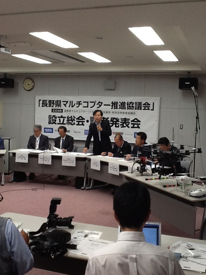 「長野県マルチコプター推進協議会」の設立総会が2015.9.8に行われ、同時に記者発表されました。イングスシナノでは、この設立に参画しております。国内ではとかく課題のみ先行して報道されておりますが、その活用方法によっては、今後非常に大きな社会貢献の出来るツールになると思います。詳細ページにて、「入会の案内」と、「設立記念特別講演会&デモフライト」のご案内 をアップしておりますので、よろしくお願いいたします。