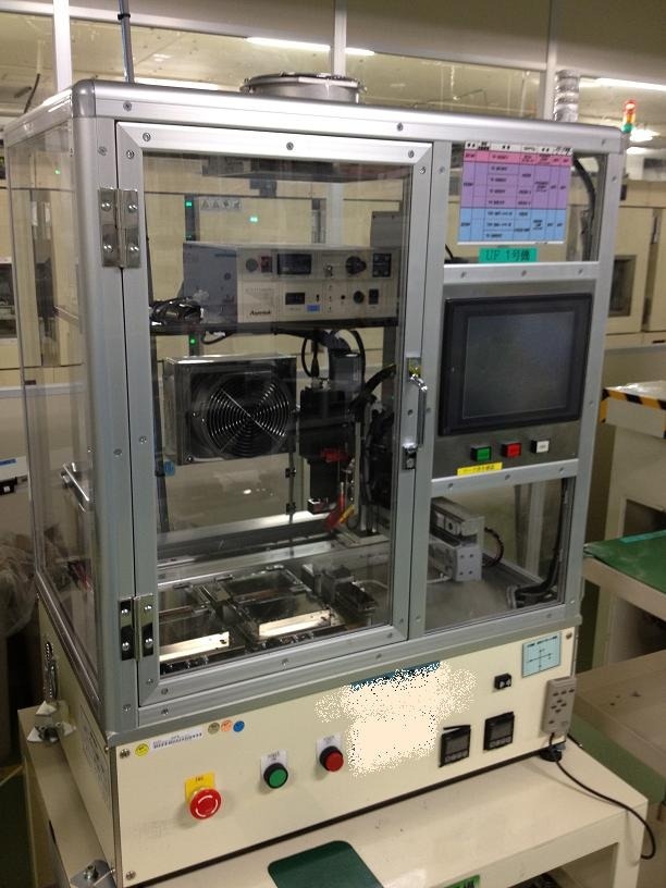 これまでフリップチップボンディングに関しましては、セミオートマシン1台のみの所有でしたので数量的なキャパが小さく、多々お客様に御迷惑をおかけしておりました。これを少しでも解消すべく、フルオートFCB3を導入いたしました。2012年3月に搬入されたところで、現在順次立上げ中でございますが、徐々に実テーマに展開してゆきますので、よろしくお願いいたします。
