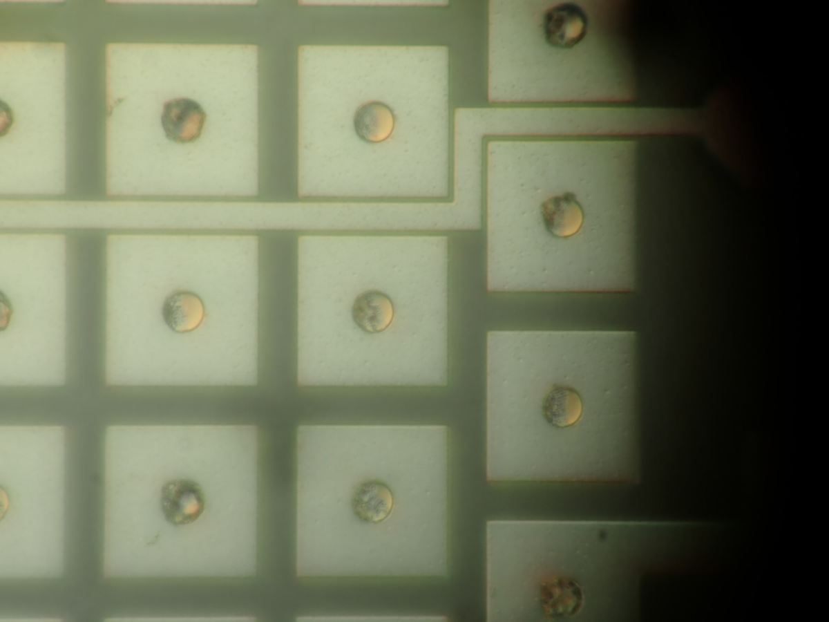 弊社では、金ワイヤのボールボンディングプロセスによる大面積へのボンディング、高段差のワイヤーボンディングへのプロセス開発を進めております。