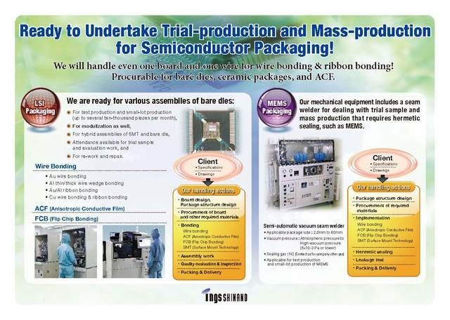 2013年06月28日(金) 日本TI様との連携 日本TI様が展開されているベアダイ販売事業で、お客様向けご案内資料の中に、ベアダイ実装業者としてイングスシナノをご紹介いただいております。逆に弊社を通じて日本TI様へベアダイの購入をお願いすることも可能です。ワンストップサービスを標榜する我々にとって、願ってもないチャンスをいただきました。今まで以上に部材調達などの面でお役に立てると思います。 ご案内資料の中で、ベアダイ実装業者としてご紹介いただいております 英語の案内文作成には、冷や汗が出ました・・・