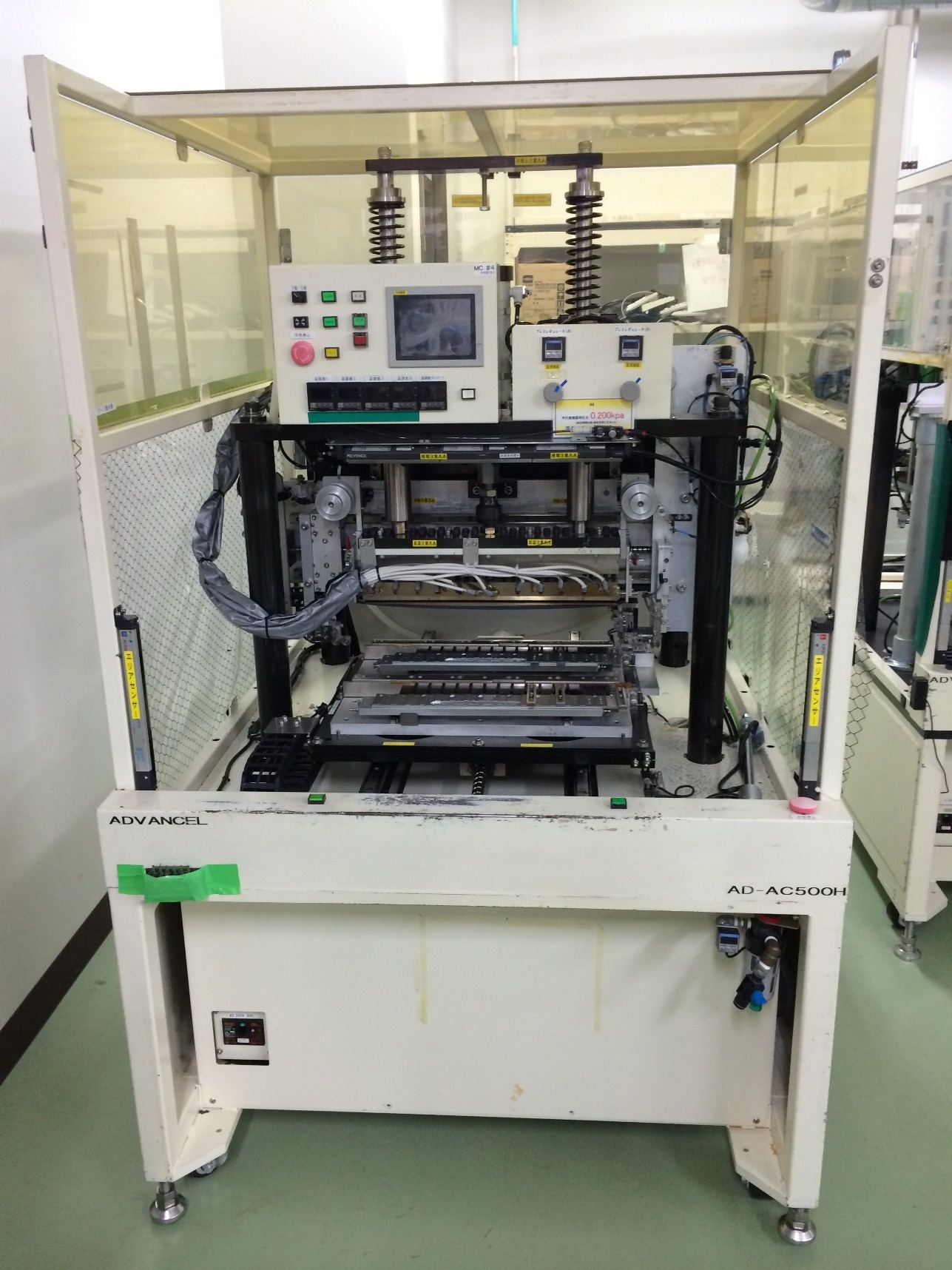 2014年07月22日(火) 大きなサイズ対応のACF転着機導入しました 弊社では これまで、中小型サイズのパネル中心に試作・少量産を受託してまいりましたが、最近になりまして大きめサイズのお引合いをいただくようになりました。そんなご要望にお応えするべく、大きめサイズ対応可能なACF転着機を導入いたしました。 現在セットアップ中ですが、2014年8月より使用出来る見込みです。是非ご活用ください。 大サイズ対応ACF転着機 主な仕様 対応寸法 Max. 500 mm幅まで(目安: 6 ~ 23 inch) 対応厚み 0.4 ~ 1.0 mm ACF幅 1.0 ~ 3.0 mm 加圧能力 290 ~ 1080 N (30~110 kgf)